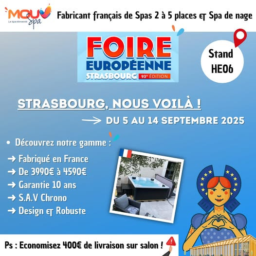 🍂 Mouv'Spa Nordique 4/5p. ➜ 4590€ ttc / Fabrication française / 195x78cm / 160kg / Garantie 10 ans / 32 Jets (Ventury & Air) / 12 Leds 🇫🇷