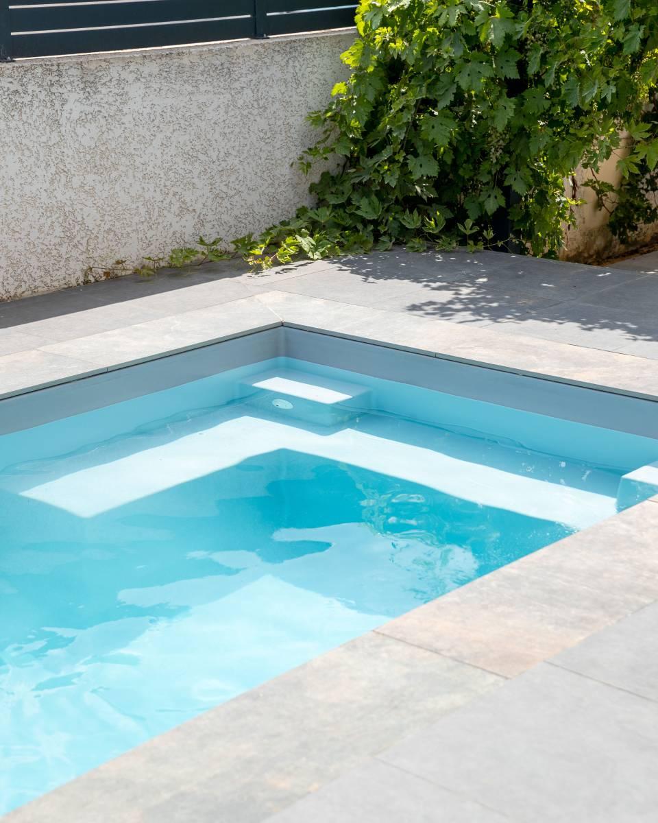 - Escalier d'angle discret : optimise l'espace de nage tout en facilitant l'accès.
